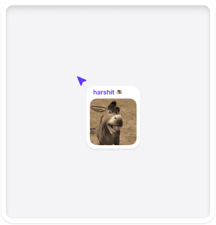 We found a balance between intuitiveness, spatiality, and speed in the form of Usercards inside a space confined by walls. Inspired by the live cursors of collaborative tools, but giving it more weight. Usercard is a real-life metaphor for you, in the form of an interface representation of a card. You’re your card, your card is you. To express, you move yourself. To express in Lounge, you move your card. It is all controlled by your cursor, which moves at the speed of your thought. You don’t need to translate your thoughts into ←→←→ keys like in gather.town or wait for your teammate to stop speaking before you can express them like in zoom. You just turn your User card into a quick chat box to talk without waiting or interrupting someone who is speaking.