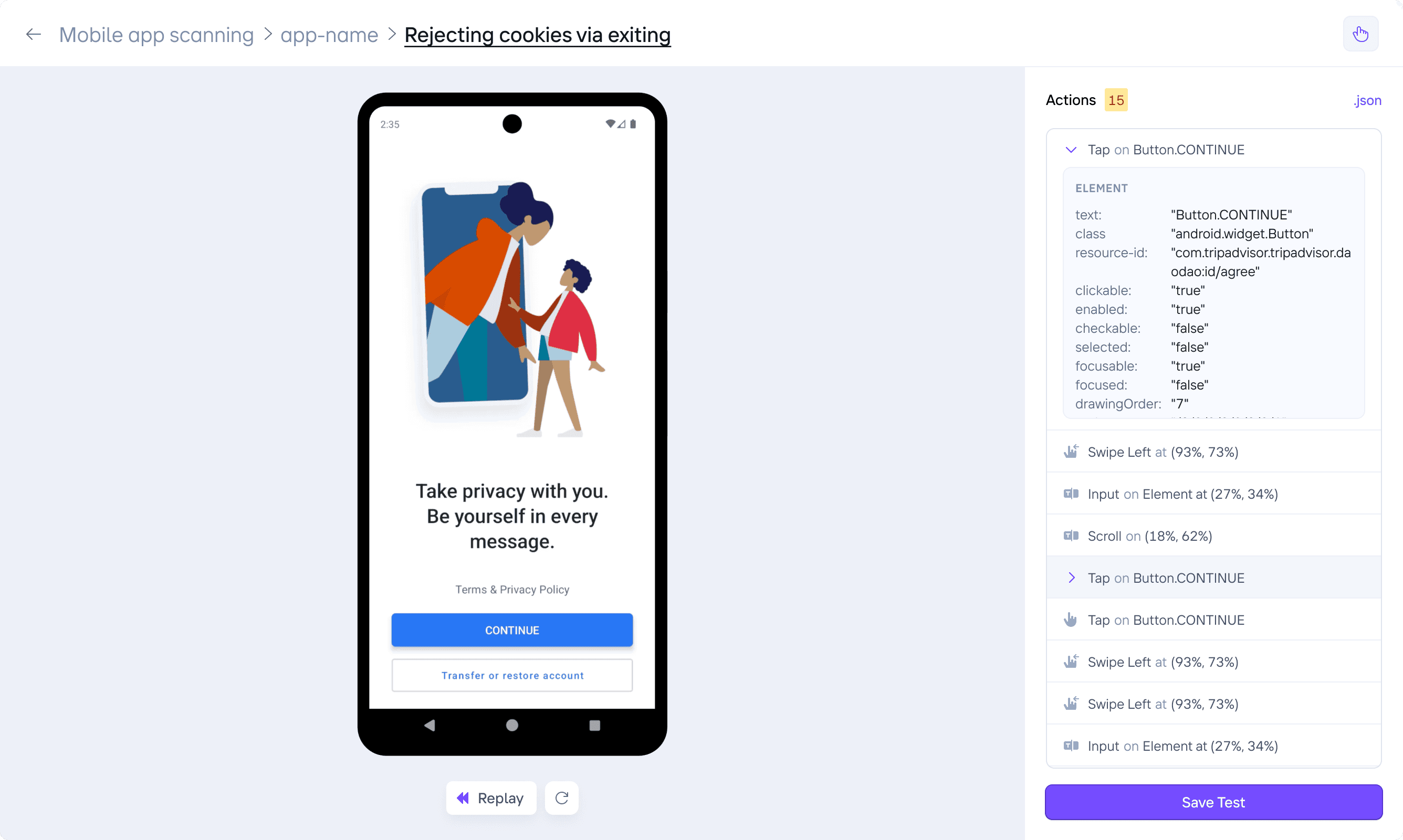 To start testing mobile applications, we need packaged app files. By scanning the APK and IPA files, we could identify the SDKs and permissions requested by the app. This gave privacy officers valuable insights. To explore further, for example to find if an app is dropping a cookie despite rejection, we need to manually run that flow and check for it. This means designing an environment that allows for simulation and testing.