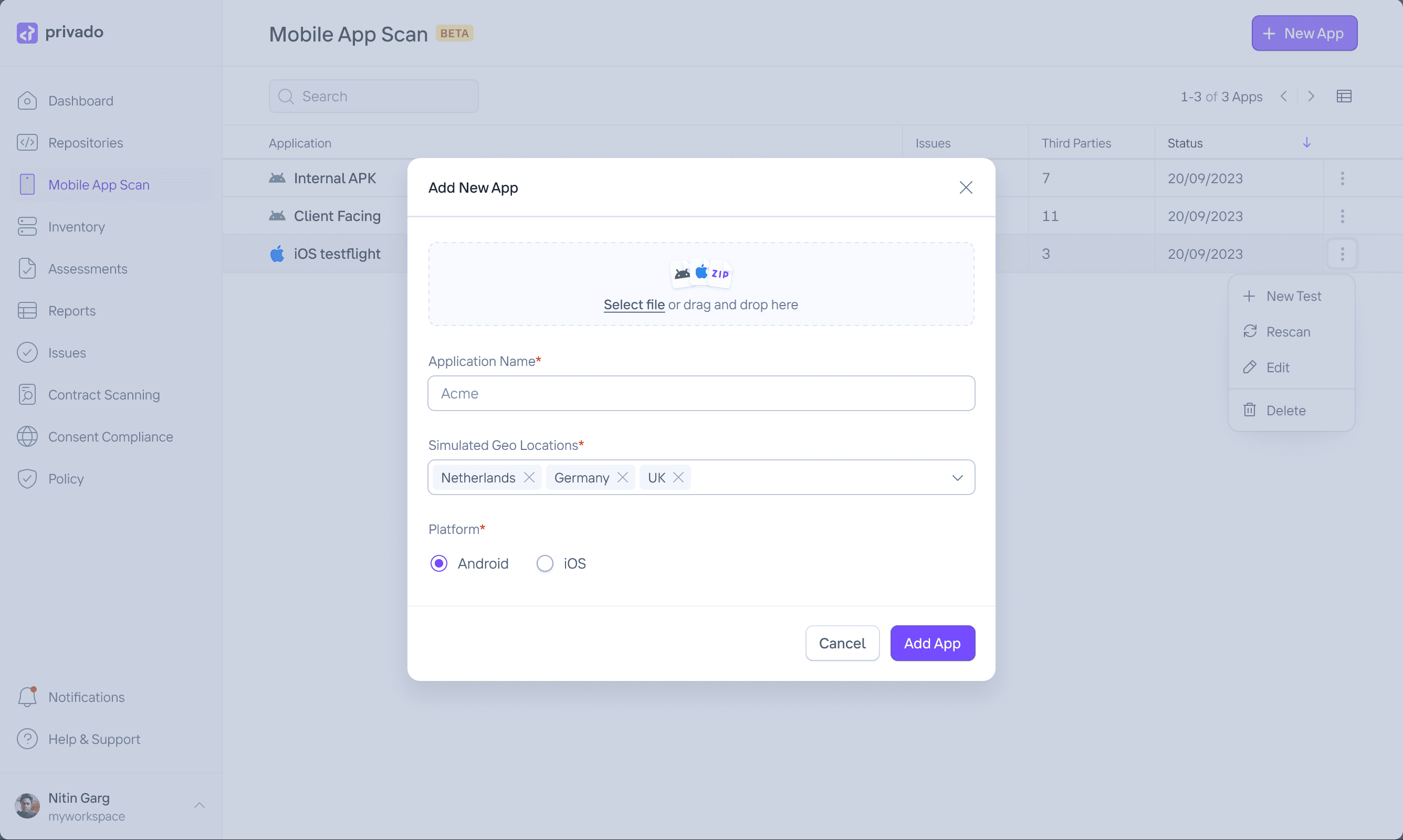 The mobile app scan is still in beta and is available for existing customers to test. It is used in sales calls to showcase Privado's unparalleled features that cover all privacy touchpoints: codebase, websites, and mobile apps.